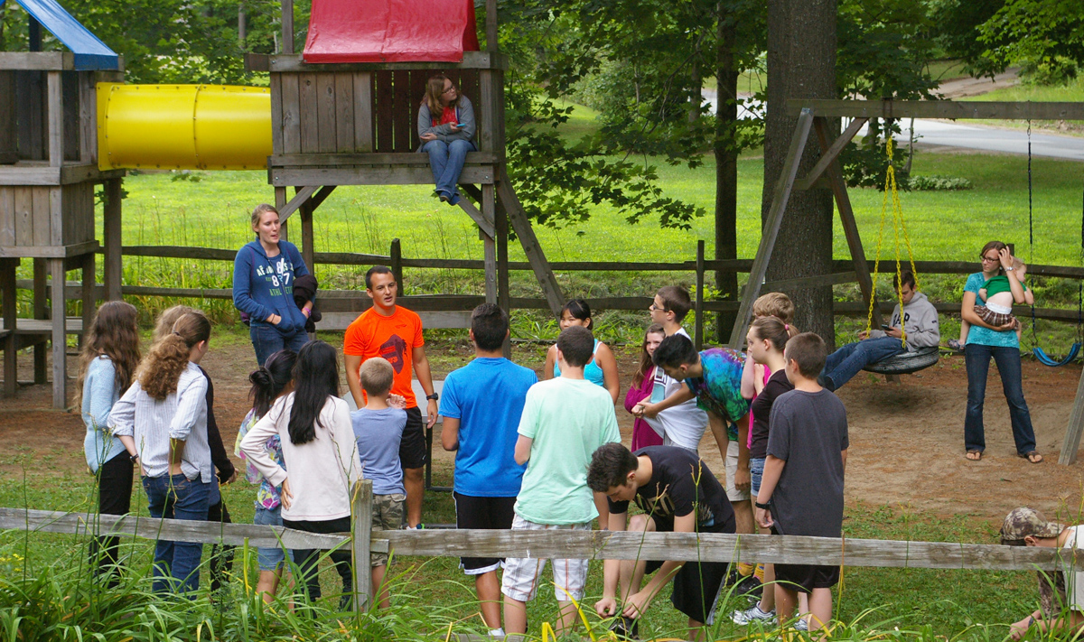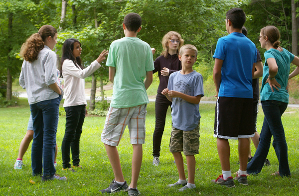 ![]() One team of Teens discuss their strategy for "Capture the Flag" |