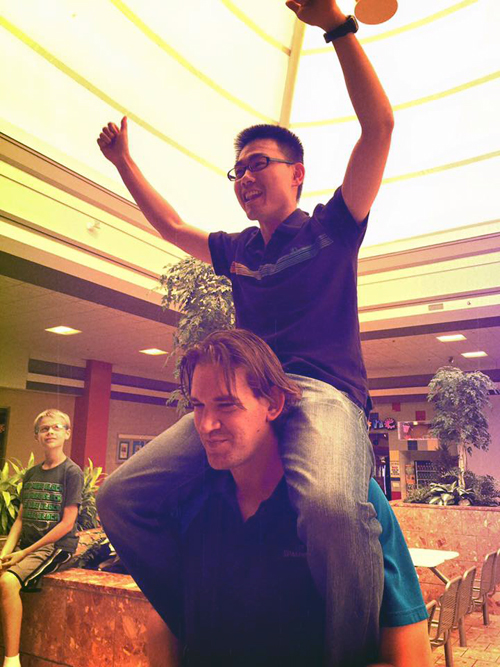 ![]() Thanks to Sam, Vincent is no longer feeling vertically challenged. |