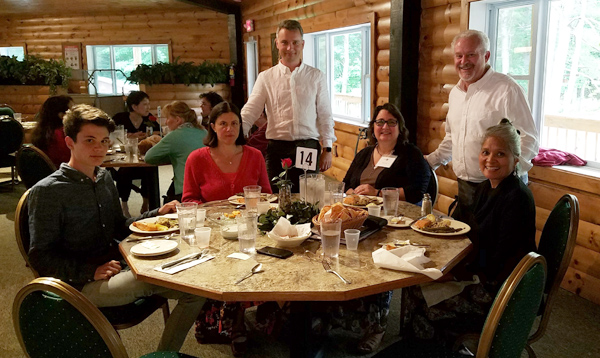 ![]() Families & new friends around the table at Shabbat dinner |