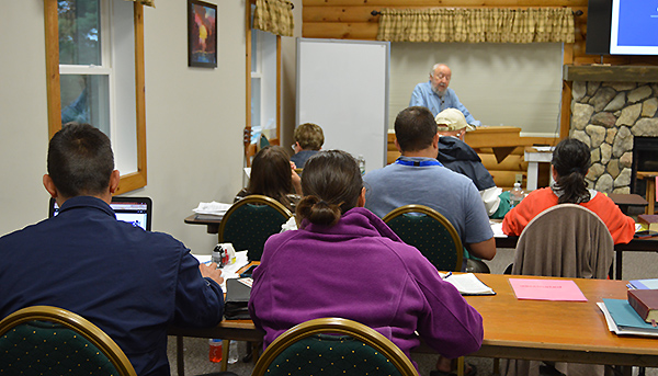 ![]() Once a week, Dr. Fruchtenbaum takes 45 minutes in the evening to answer Bible Questions that are not related to the courses that week. He is very approachable, just ask him a question !! (note the custom Pen Pocket!) |