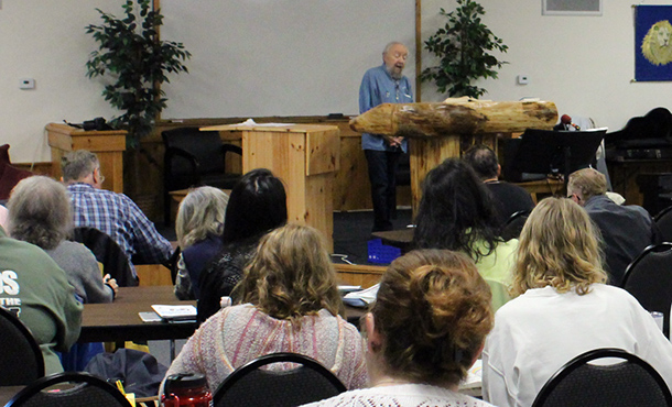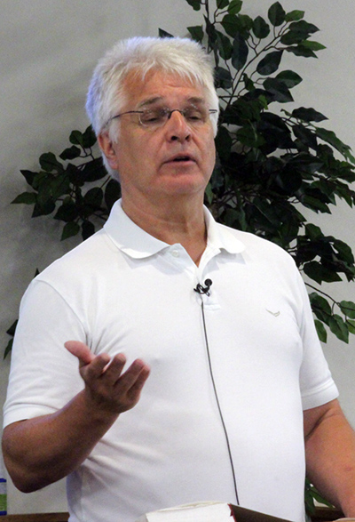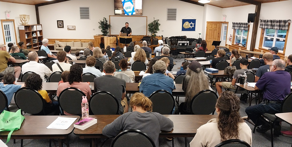 Dr Arnold Fruchtenbaum teaches a class during the Shoshanah Campus Labor Day 2024 Bible weekend. |