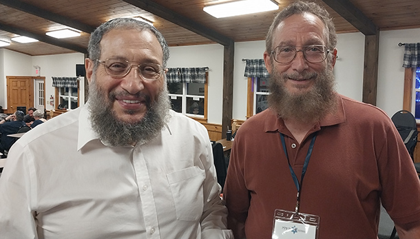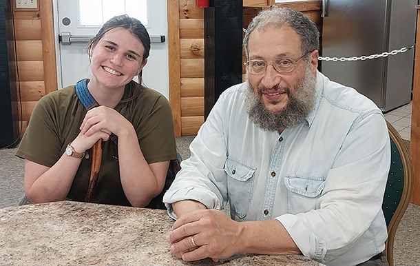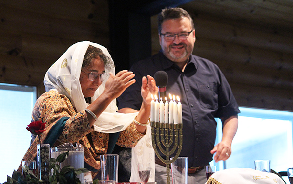 ![]() Jenet lights the Shabbat candles as Dr. Sigler looks on |