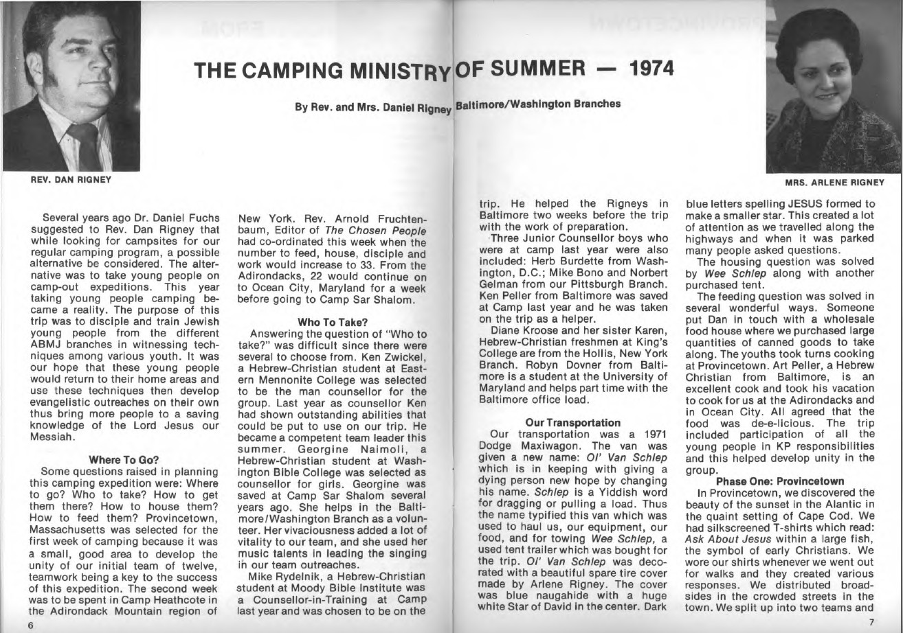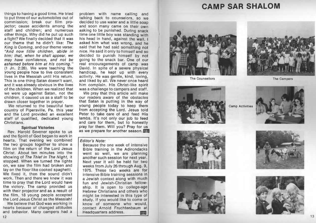 Dan & Arlene's ministry at the FIRST Camp Shoshanah IN 1974 profiled in