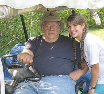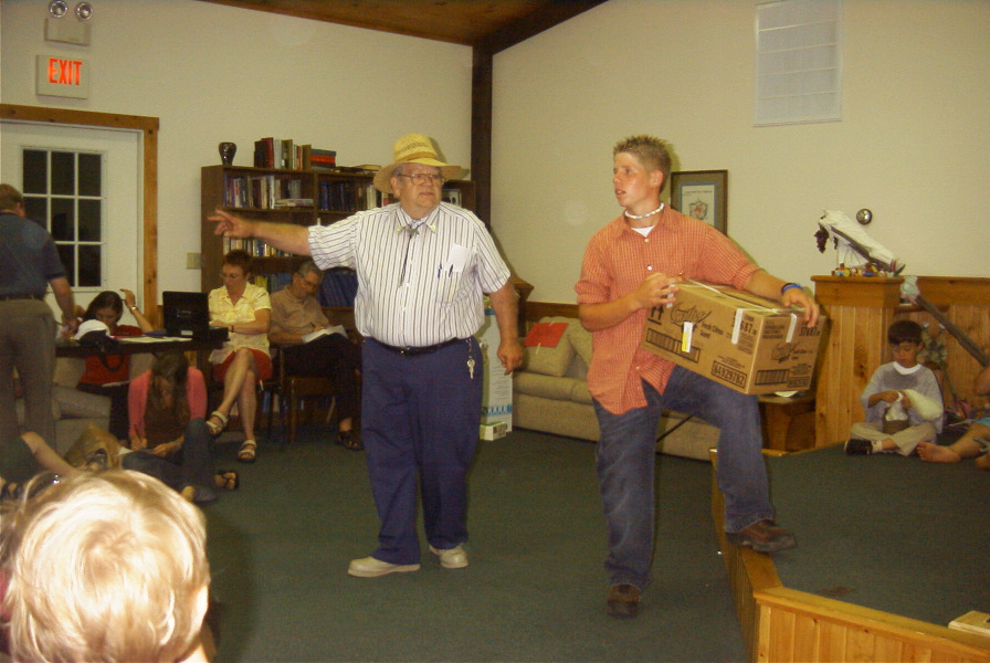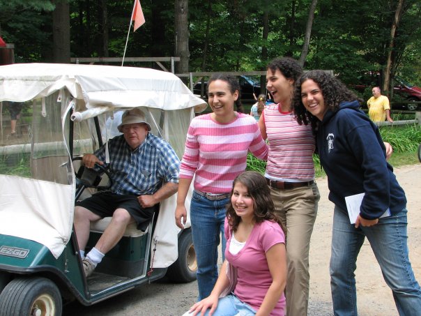 Pages could be written to describe this photo, suffice it to say that almost 30 years ago Dan discipled two young Jewish men in Baltimore, believers in Messiah. They followed him to Camp Shoshanah to further that discipleship. There they met some young ladies, whirlwind courtships ensued, and both couples soon found themselves under the Chupah. God blessed the unions with children, eleven in all, some of whom are seen here in 2007, with Cupid in the Camp Golf Cart. Thanks Dan! |